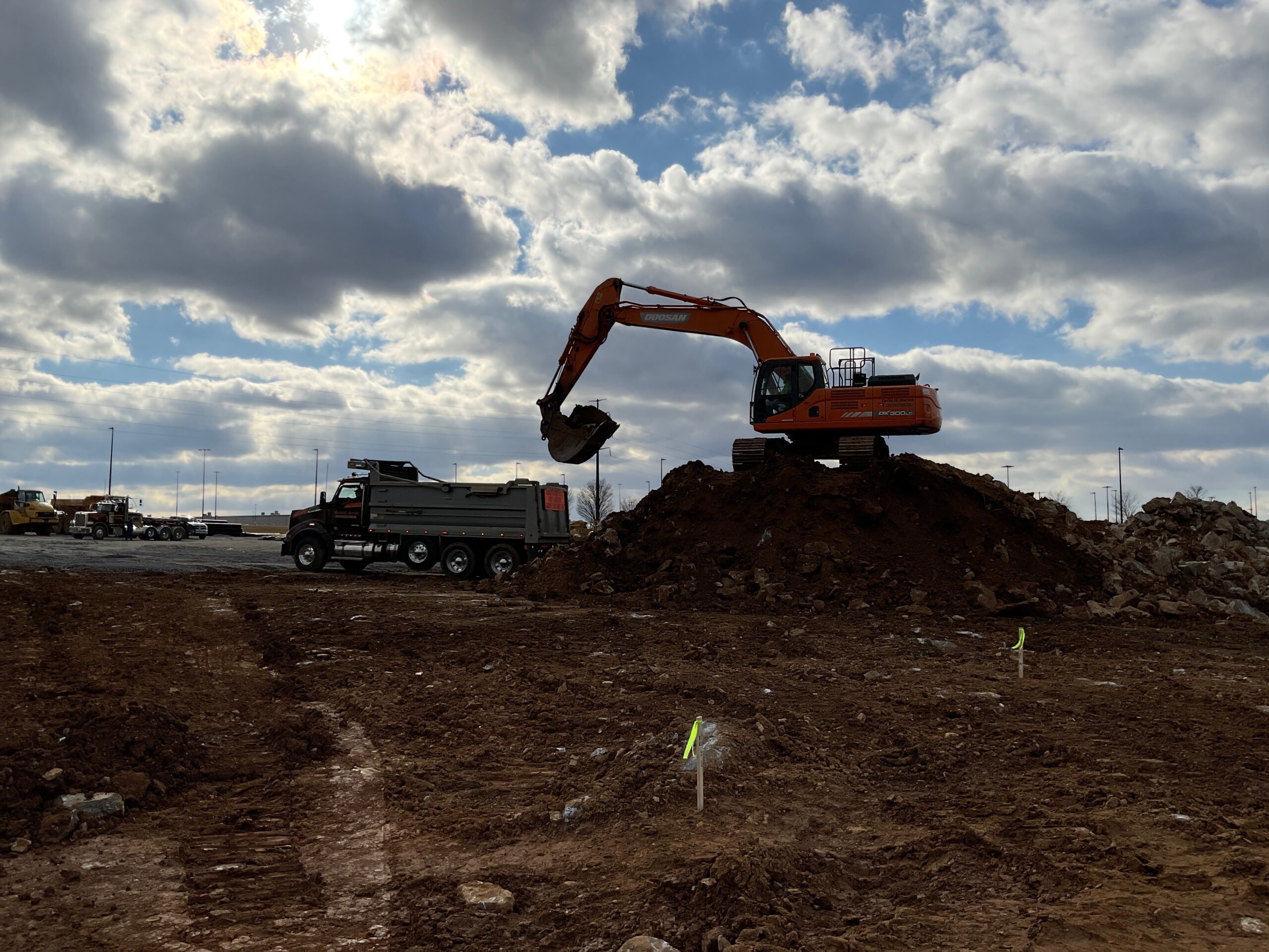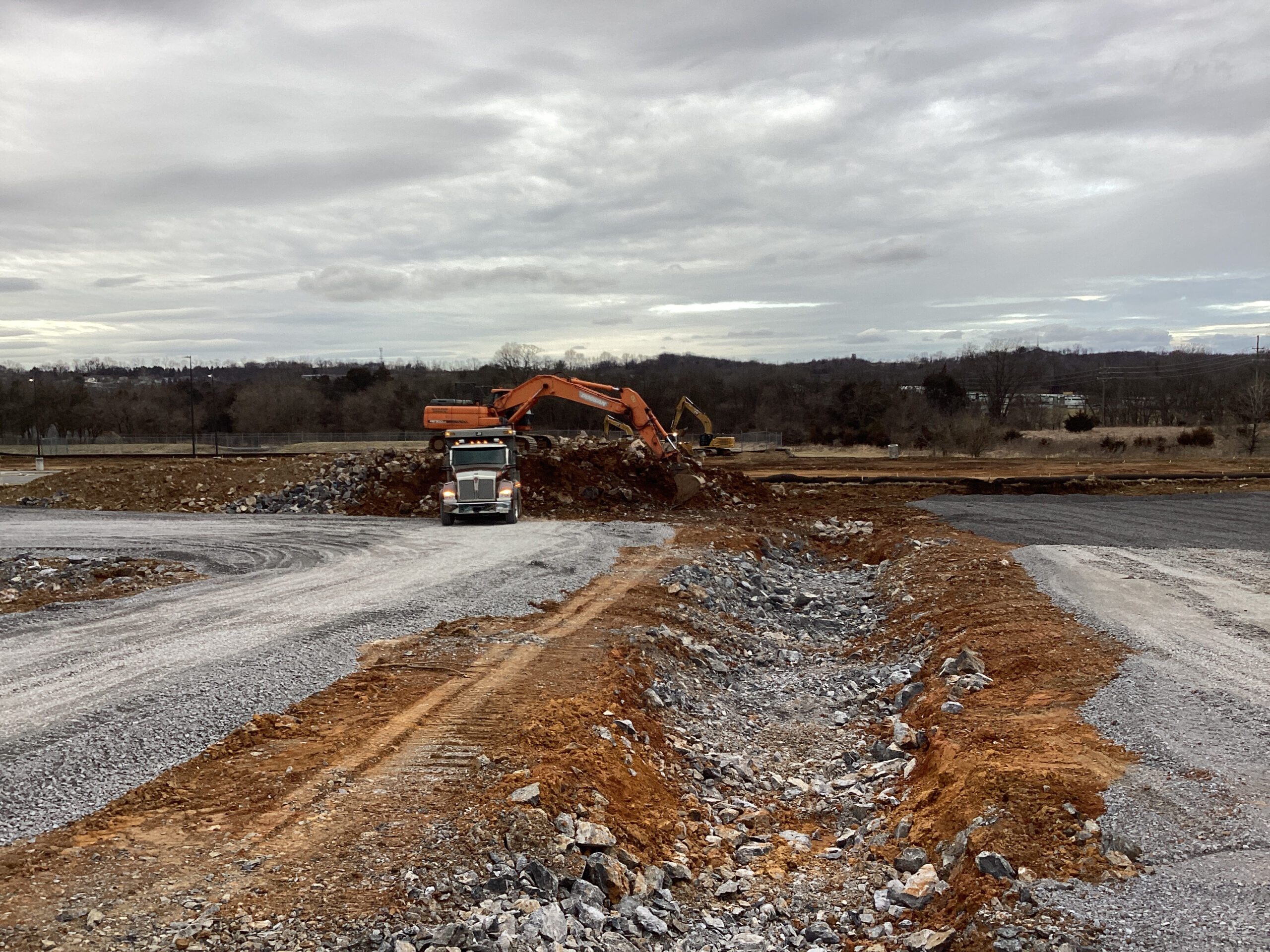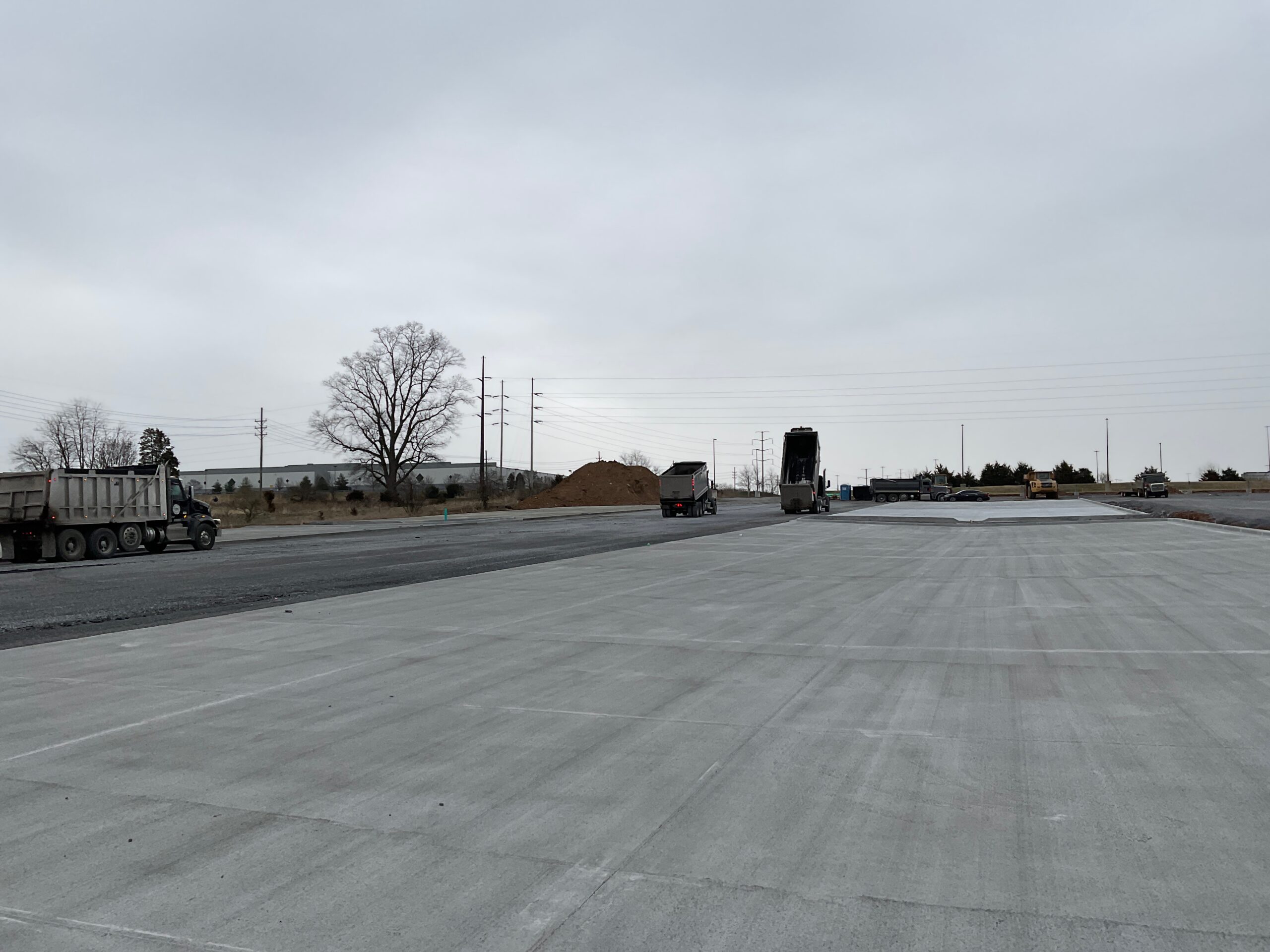 This project started out with us having to clear and grub a small area and modify an existing weir wall. Although the amount of actual earth that we had to move was minimal at just 30,000 cubic yard, the scope of the project included 43,000 square yards of paving, 59,700 square feet of concrete flat work for trailer storage and 4,500 feet of curbing. Our crews worked tirelessly to complete this work and meet our clients deadline. Of course, with the location being in Hagerstown we encountered rock but with some drilling, blasting and hydra hammer work, it was soon completed and we moved on to the next stage