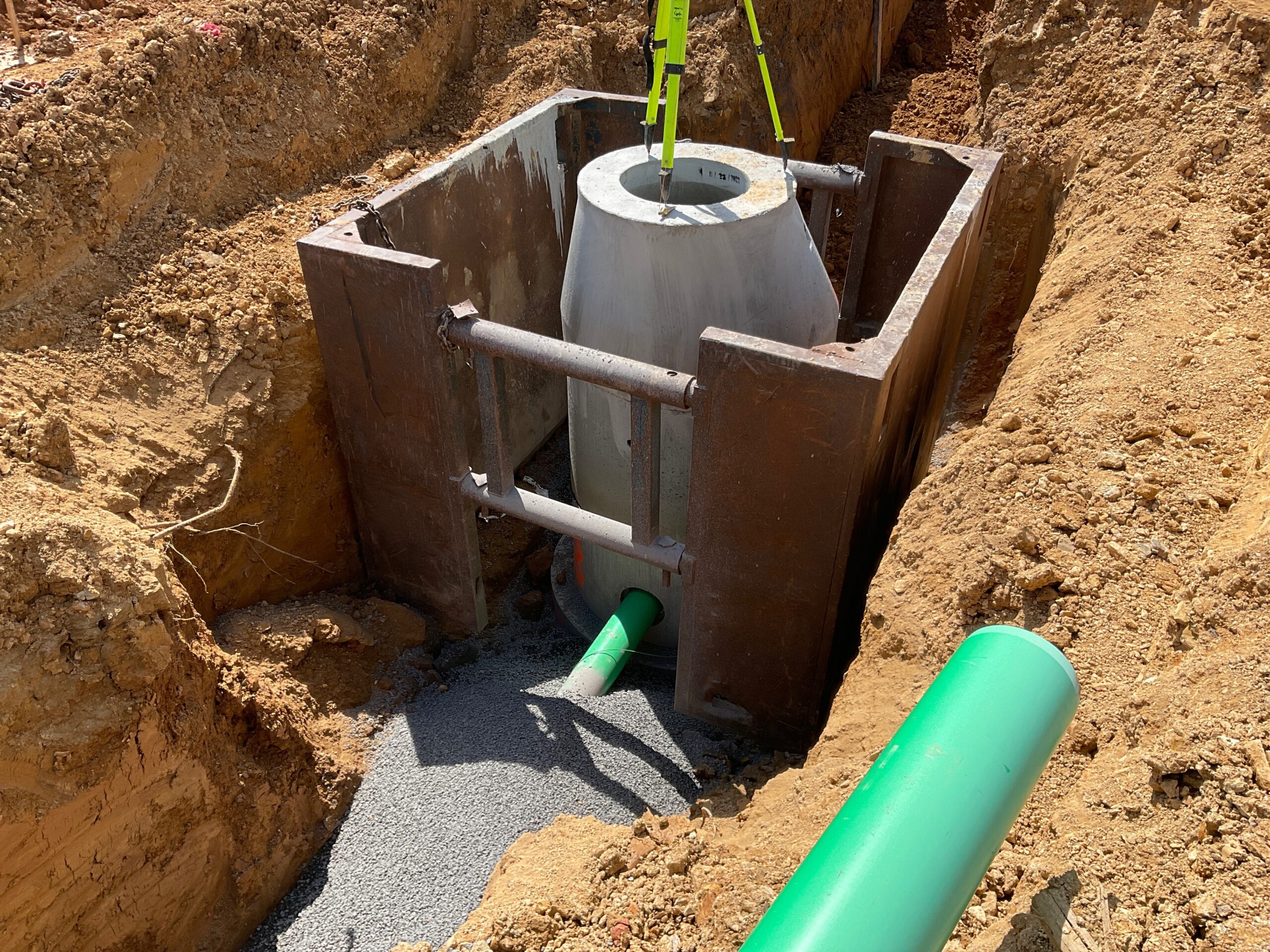 This project required us to install 5,200 feet of water line in sizes from ¾” thru 12”, 5,500 feet of 4”-8” sanitary sewer, 1,200 feet of storm sewer from 15”-24” and 26,000 feet of conduit from ¾”-5” for the electric, telephone and cable services. This project was coordinated with Berkeley County water and sewer departments, First Energy Corporation, Frontier Communications, and Comcast cable. The utility portion of this project took just under 2 months from start to finish with the installation of nearly 38,000 feet of utilities and 28 precast concrete structures.