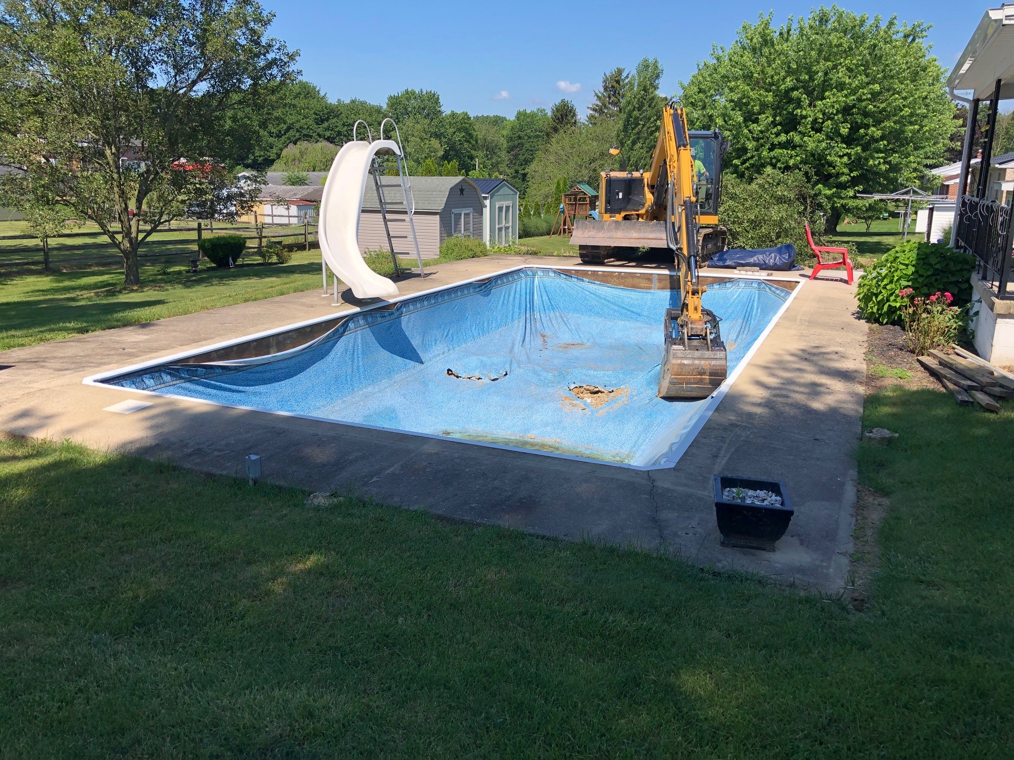 The owners of this property contracted DHM to come in and remove an unwanted pool from their property. After problems with the pool and rising costs to maintain it, they decided that having their yard back was more important to them than having a pool. This project was fairly simple. Remove the old pool and dispose of it, fill in the hole with compacted fill, place topsoil and finally place lawn seed and straw.