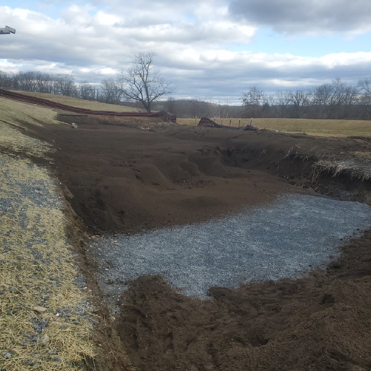 When given the green light, DHM Superintendent Dwayne Judd had the machinery and people onsite and ready to go. From the start, there were two 627 Pans running, a GPS D-6 Dozer and a Roller making the cut and fills. Meanwhile, an trackhoe loading 18 to 20 tri-axle dump trucks daily for the exporting of material. Each dump truck would haul out 10 loads per day – that’s 180-200 loads! When you do the math, that is 2,400 cubic yards per day.