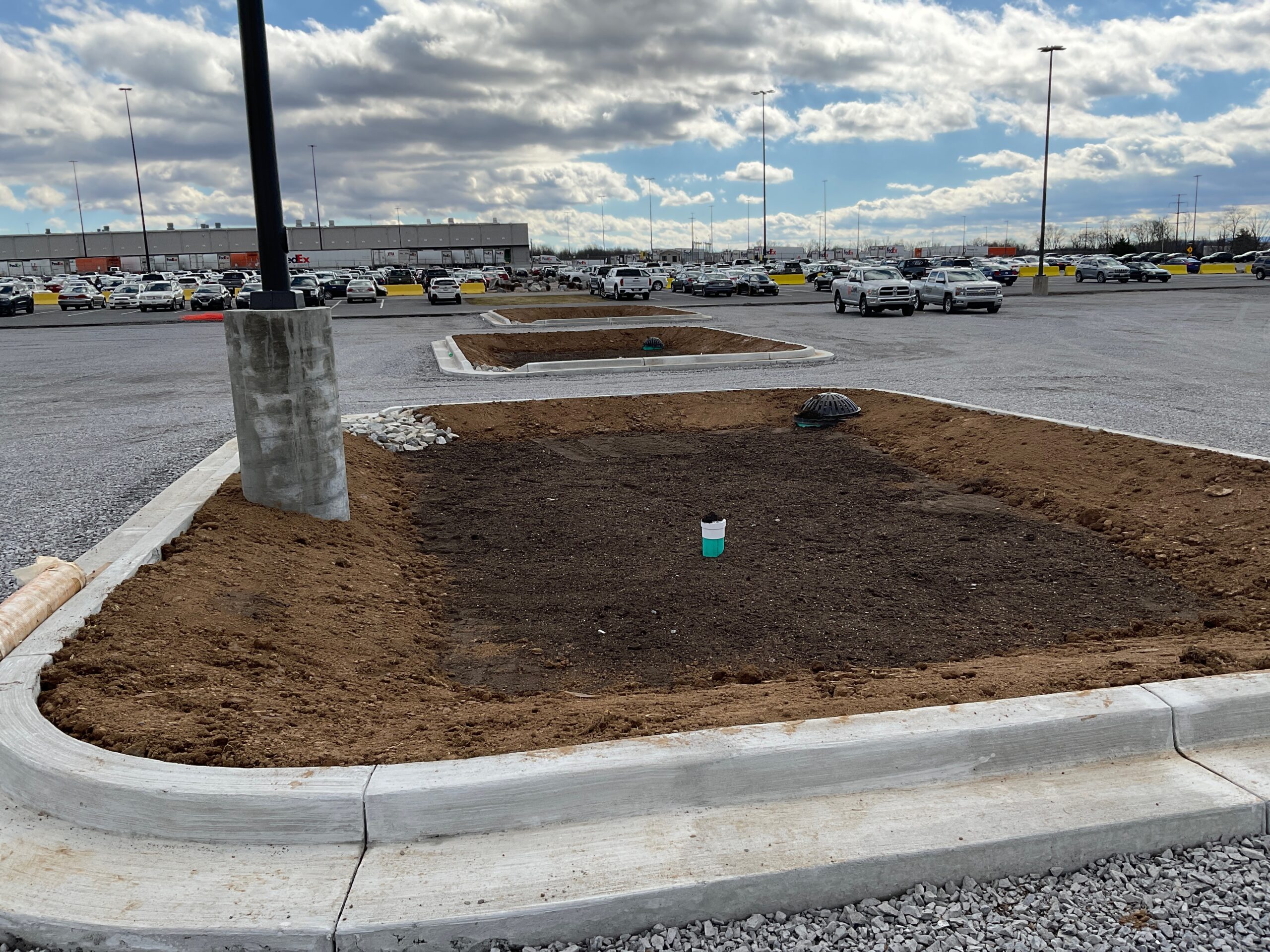 As part of the storm sewer work we installed 11 storm inlet boxes, 24 Nyoplast yard drains, 5500 feet of storm sewer piping and 24 bio ponds. The bio ponds consisted of PVC liners, small diameter pipe, stone and bio-mix on top. To finish it off 365 trees, shrubs and plugs were planted in the bio ponds.