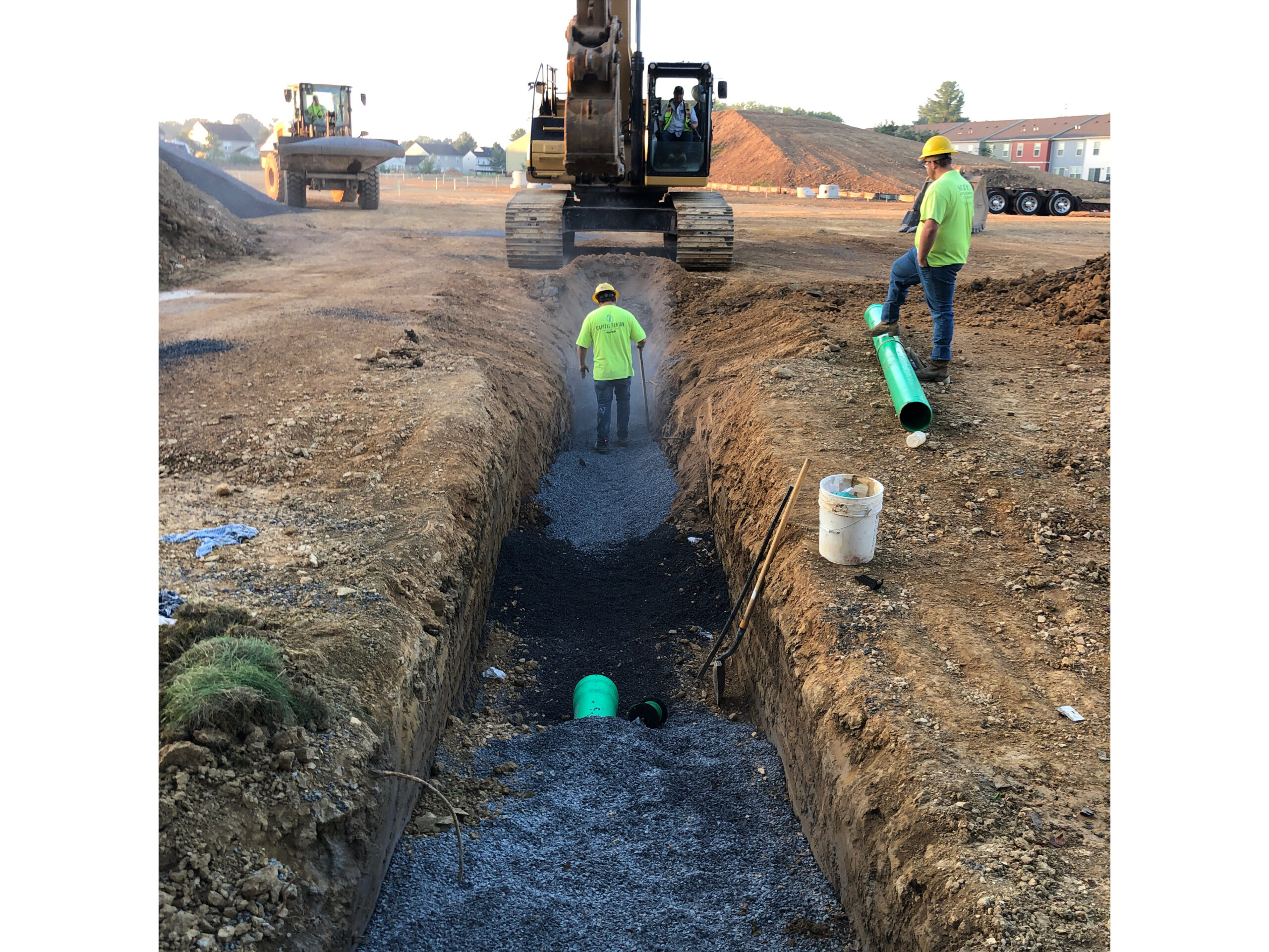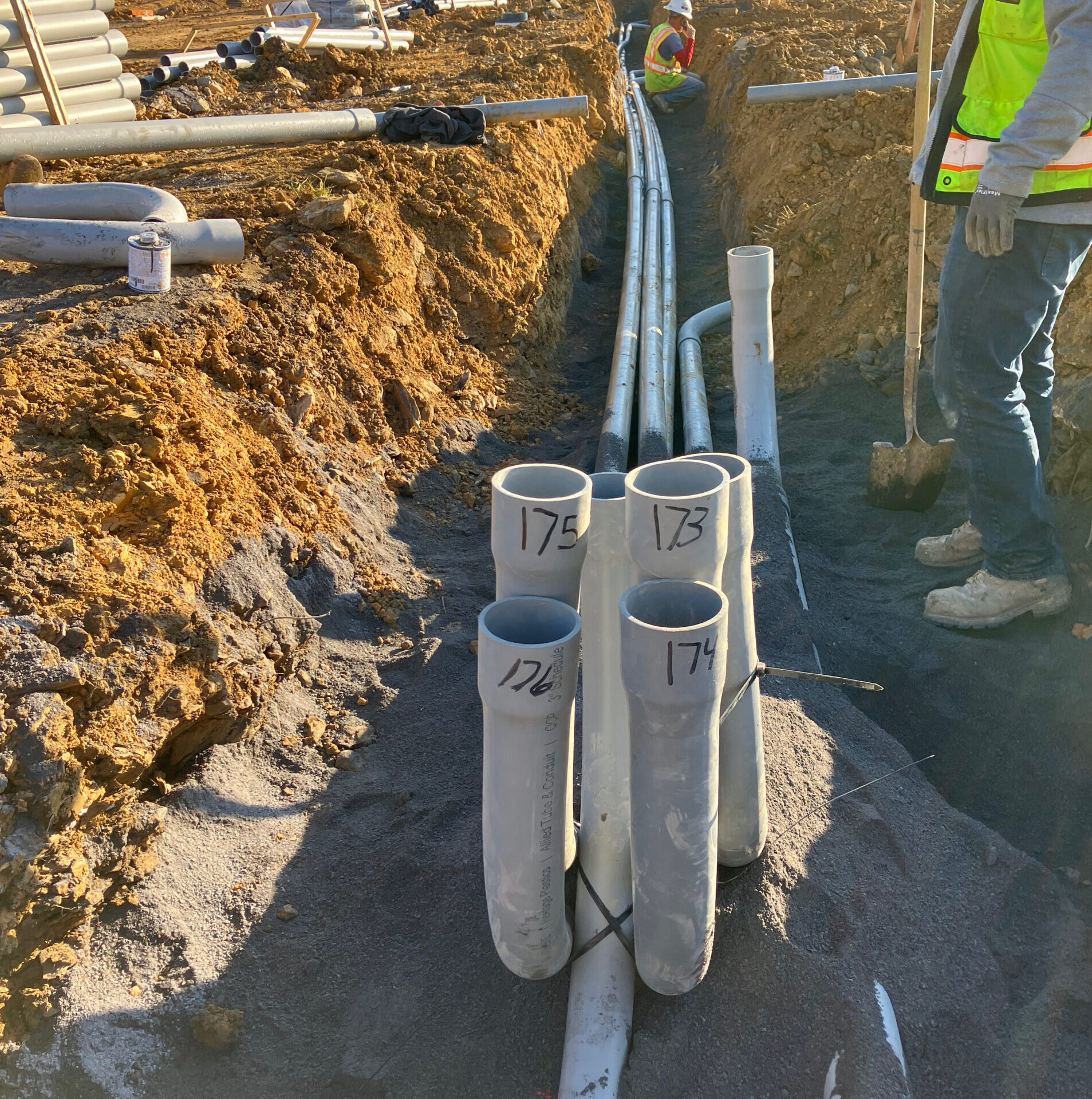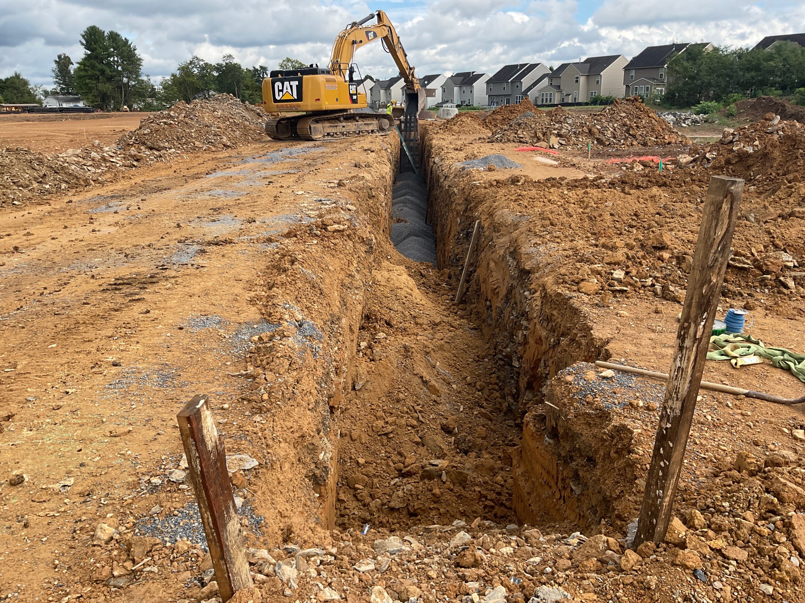 This project required us to install 5,200 feet of water line in sizes from ¾” thru 12”, 5,500 feet of 4”-8” sanitary sewer, 1,200 feet of storm sewer from 15”-24” and 26,000 feet of conduit from ¾”-5” for the electric, telephone and cable services. This project was coordinated with Berkeley County water and sewer departments, First Energy Corporation, Frontier Communications, and Comcast cable. The utility portion of this project took just under 2 months from start to finish with the installation of nearly 38,000 feet of utilities and 28 precast concrete structures.