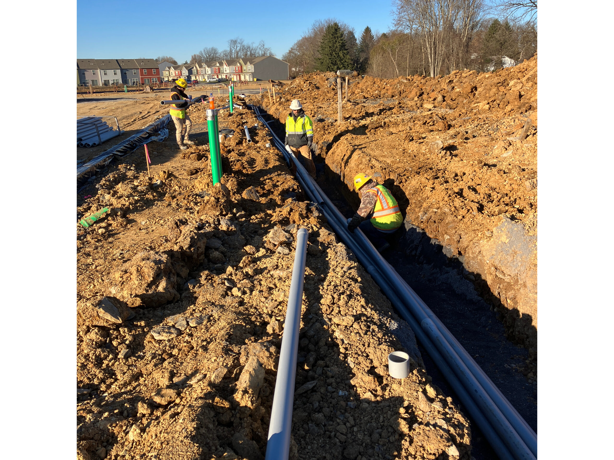 This phased subdivision project was a mix of duplex and townhouse lots. We handled everything on this project including, drill and blasting of rock, site grading, sewer, water and storm sewer utilities as well as electrical conduits. Our crew also installed concrete curbing, stone under paving and blacktop. We utilized our rock crushing plant on this project as well. Our environmental crews installed bio-materials to lawn areas as per specifications before we completed the seeding.