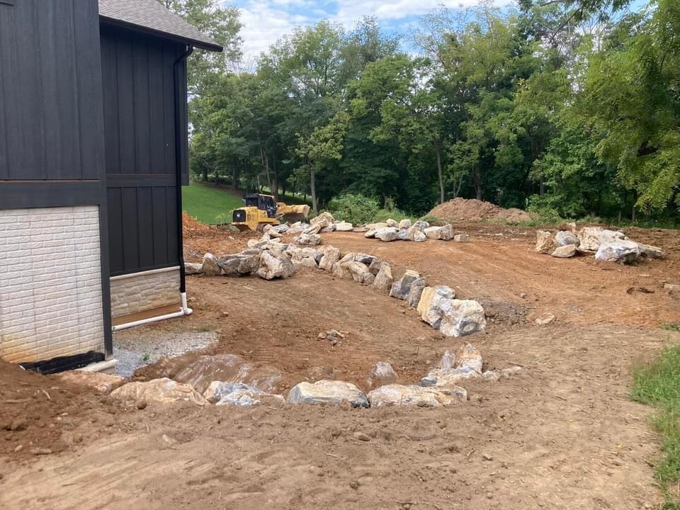 You can see that we used some of the rocks for a small rock wall which were placed by our operators in the locations that the homeowner requested.