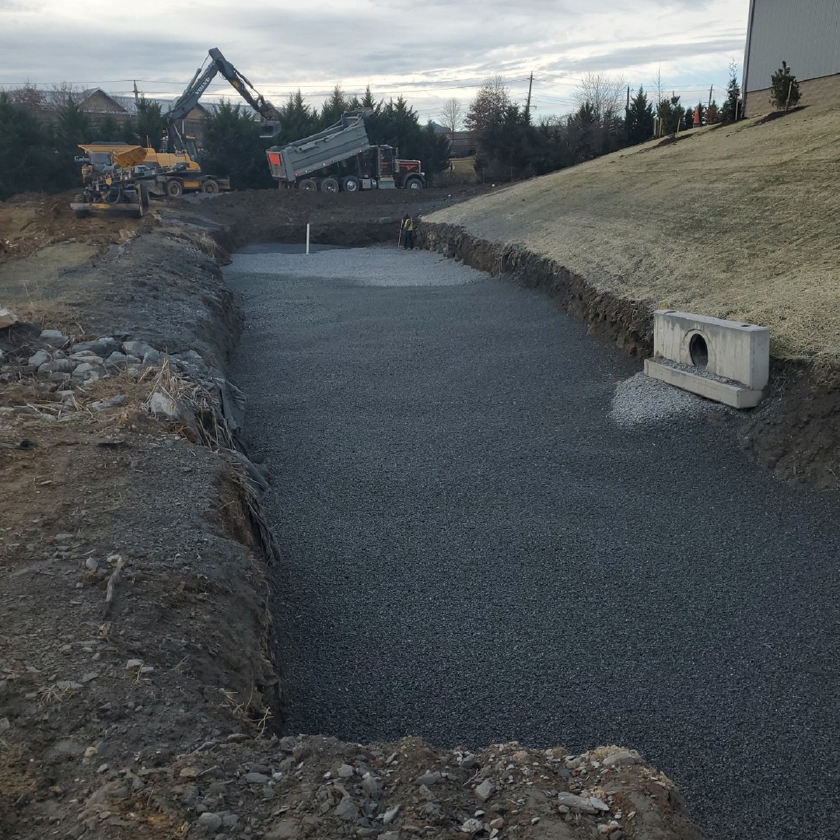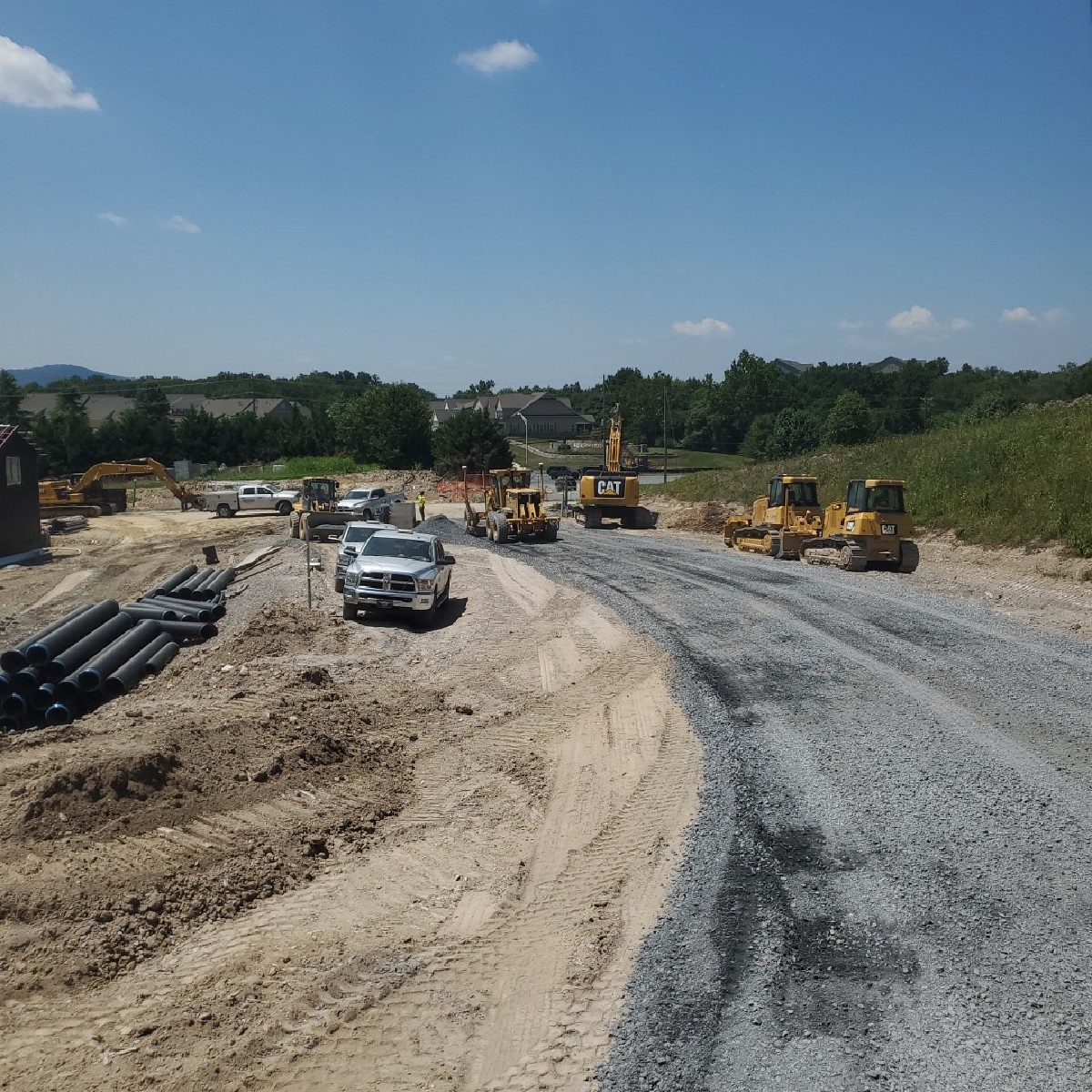 To reach subgrade elevations took just five weeks. A utility crew then moved in and within two weeks they installed 1,000 feet of sewer, water, and storm lines. Dwayne is quick to credit his team for completing the task in a timely manner. Dwayne added “A big accomplishment for us was moving that much material in such a short amount of time, but the guys got the job done.”