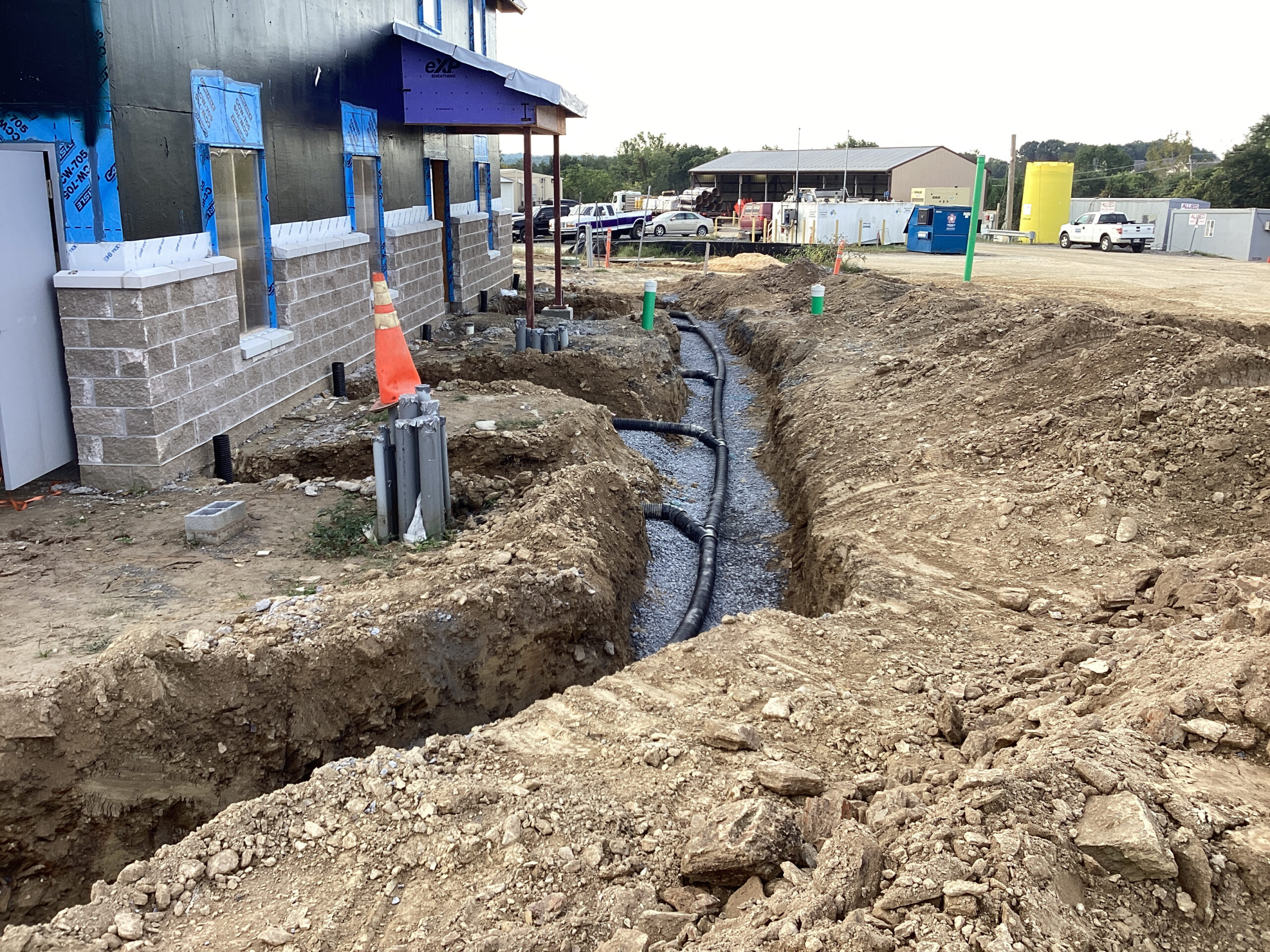 In August 2021, a huge upgrade began at the Urbana Salt Yard. Upon completion, there will be a new two-story building with offices, a kitchen, and a bunkhouse for weary drivers. In addition, they are constructing a 10,000-ton salt barn structure, a six-bay truck barn, a new wash bay, and a material and equipment storage barn. DHM’s part of this expansion included cutting and filling approximately 23,000 cubic yards, exporting 54,000 cubic yards, and installing storm, sanitary and water lines.